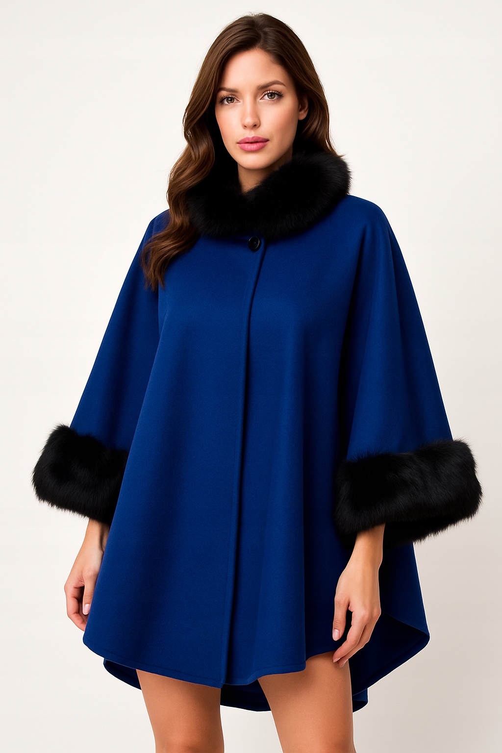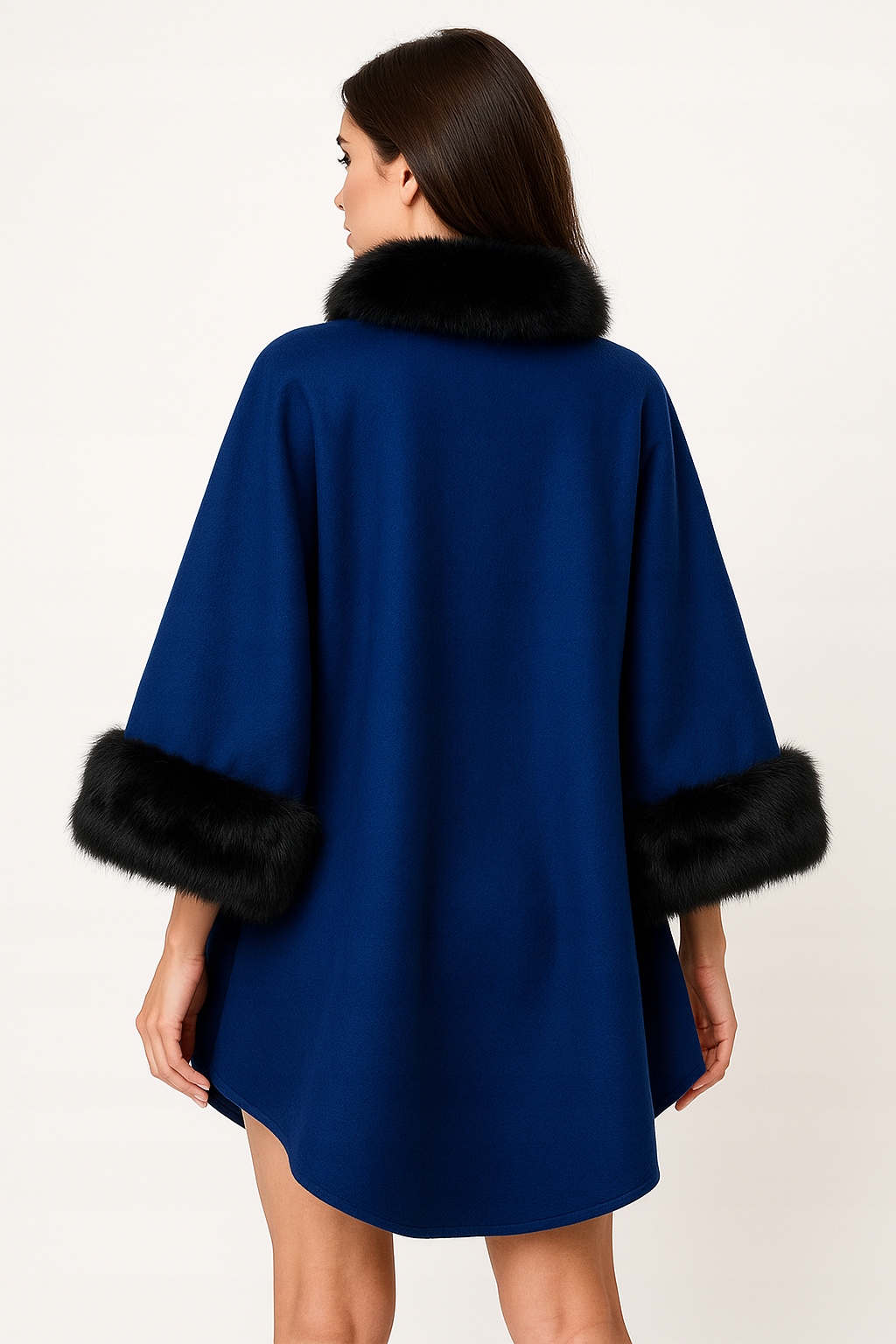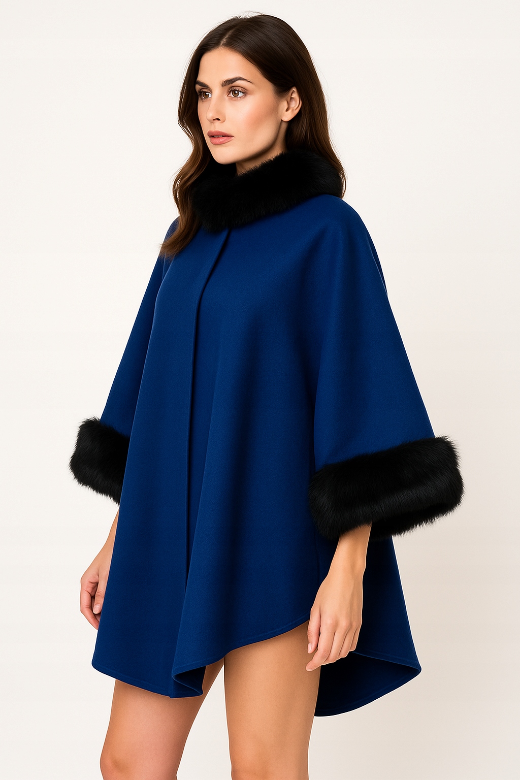 Damskie ponczo z futrem - kołnierz i rękawy w luksusowym stylu