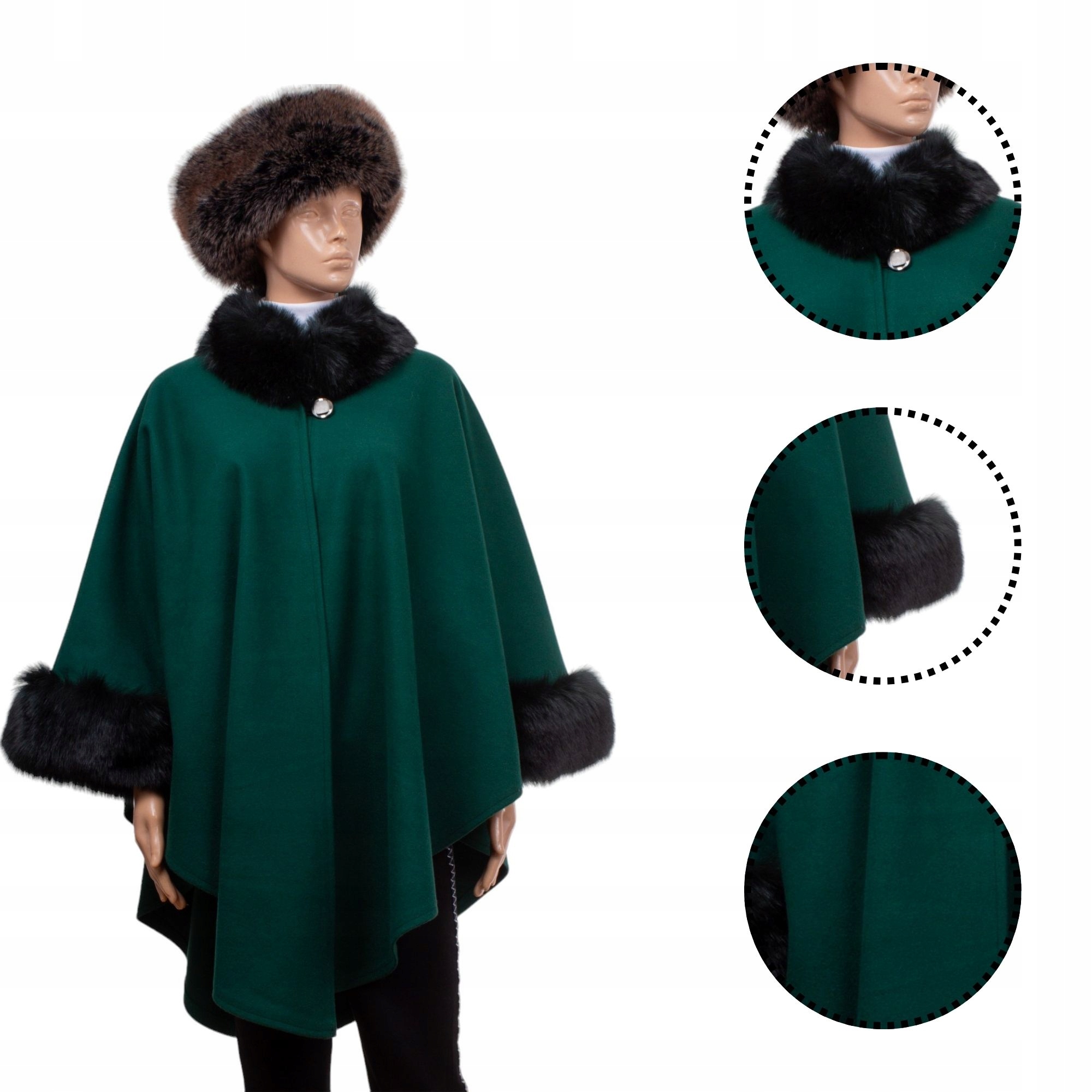 Etola ponczo z dodatkami eko futra narzutka wiosna jesień uniwersalne