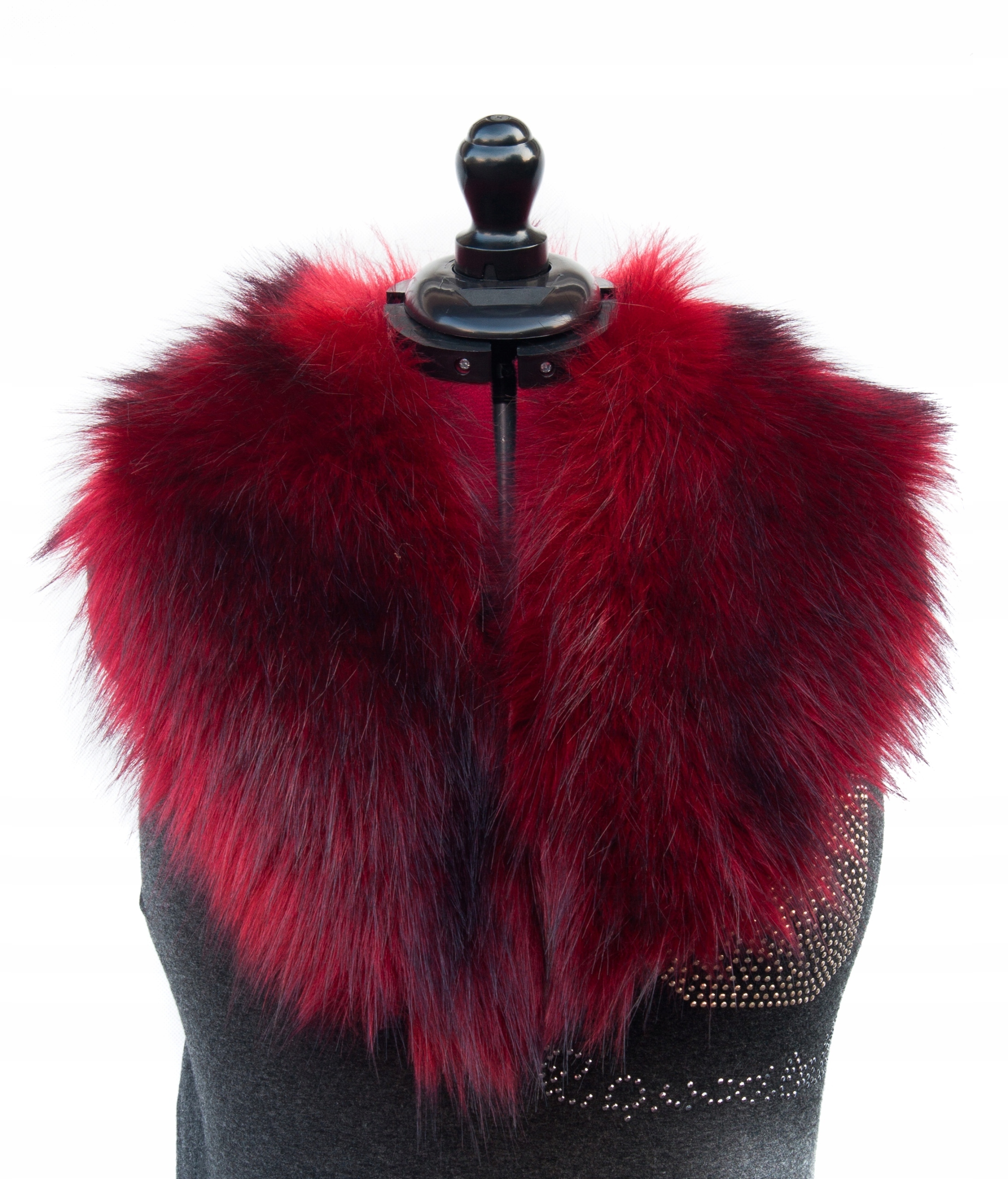 Dla tych, którzy nie boją się wyróżniać. Ten kołnierz to więcej niż dodatek – to manifest. Wyjątkowy efekt ombre (czarno-czerwony) na długim włosiu nadaje mu drapieżny, lekko punkowy charakter, idealny do stworzenia niezapomnianego looku.