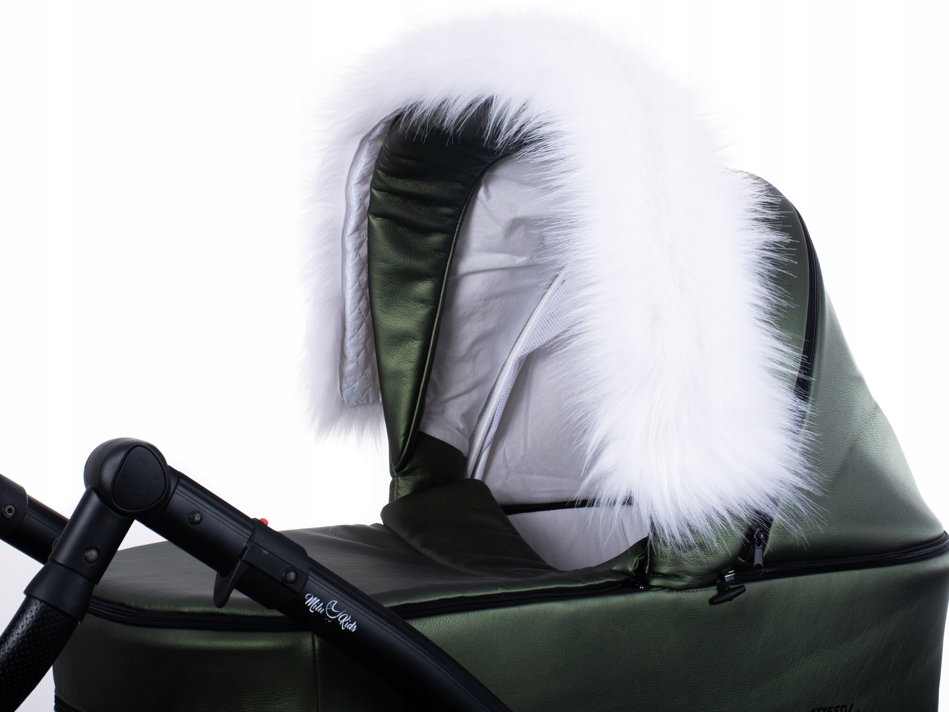 Obszycie budki wózka białe obszycie futrzane do wózka eko futro jenot