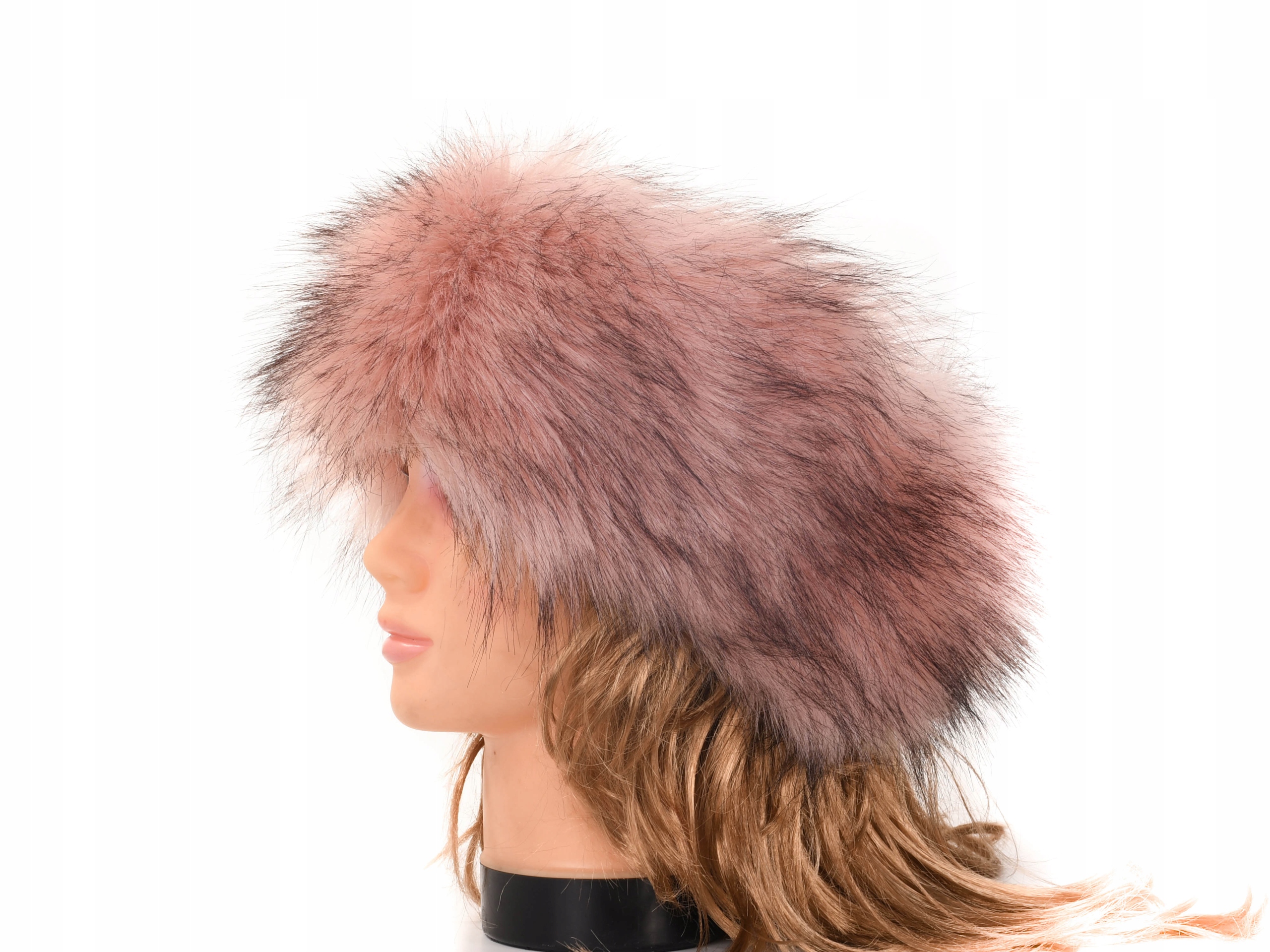 Opaska futerkowa róż eko futro jenot jesienna wiosenna futrzana