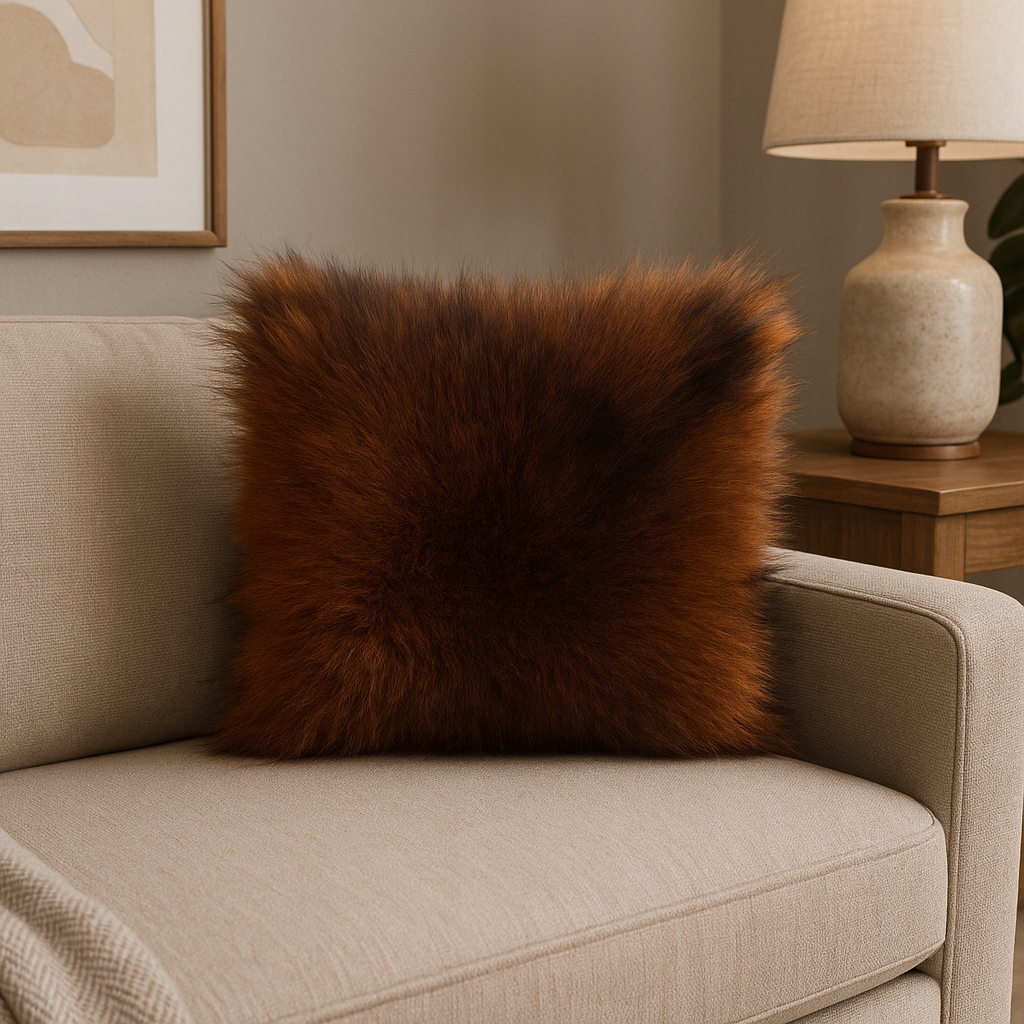 Poduszka Futrzana z eko futra jenot ozdobna futerkowa 35x35