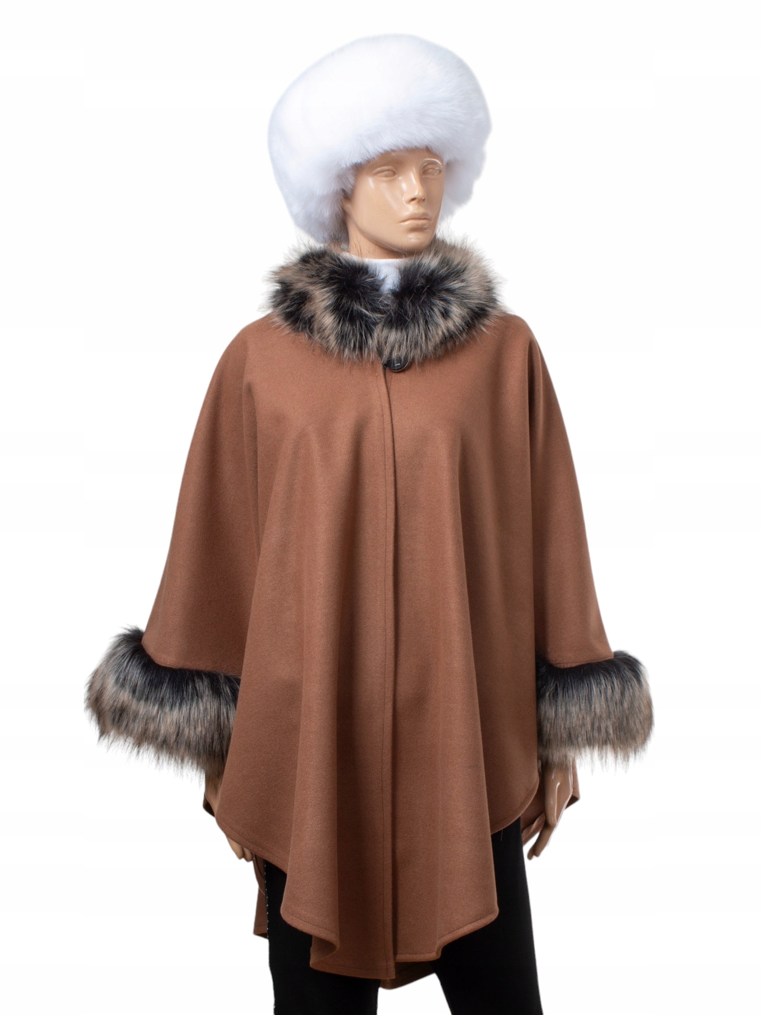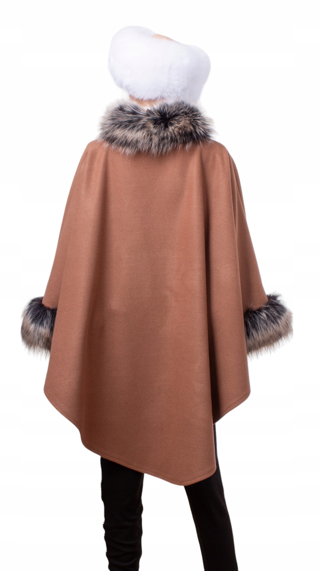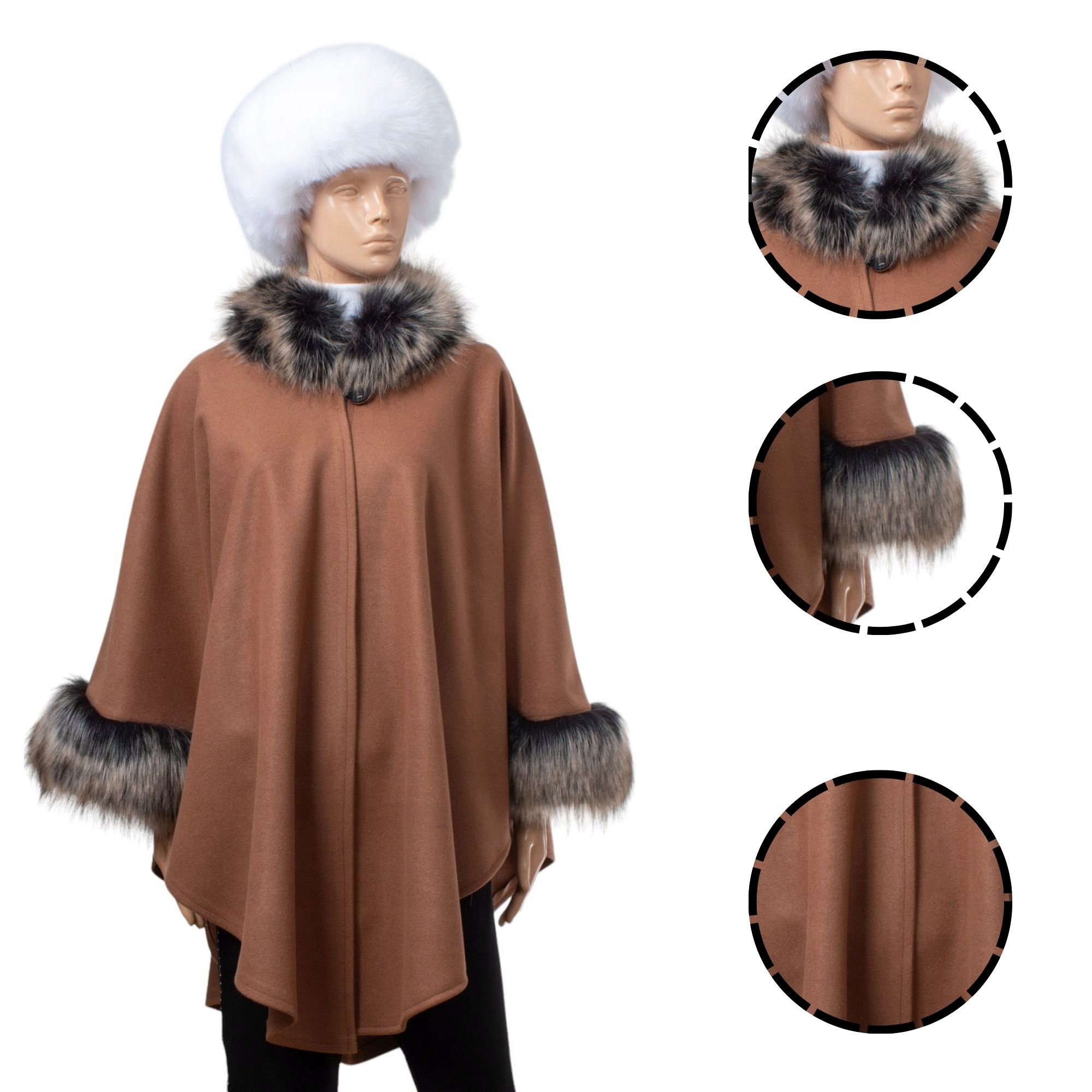 Ponczo Etola w Eleganckim brązie z Sztucznym Futrem