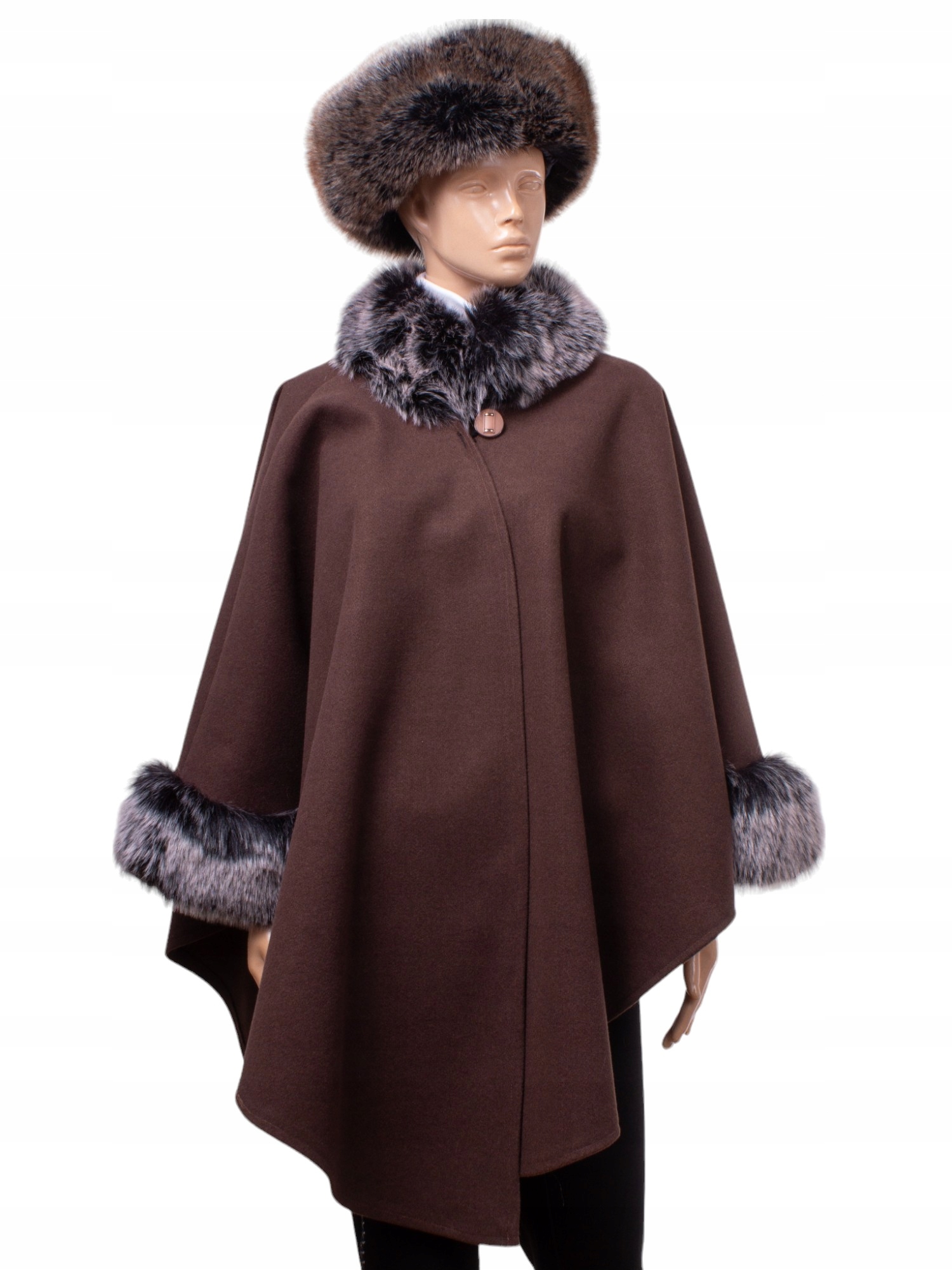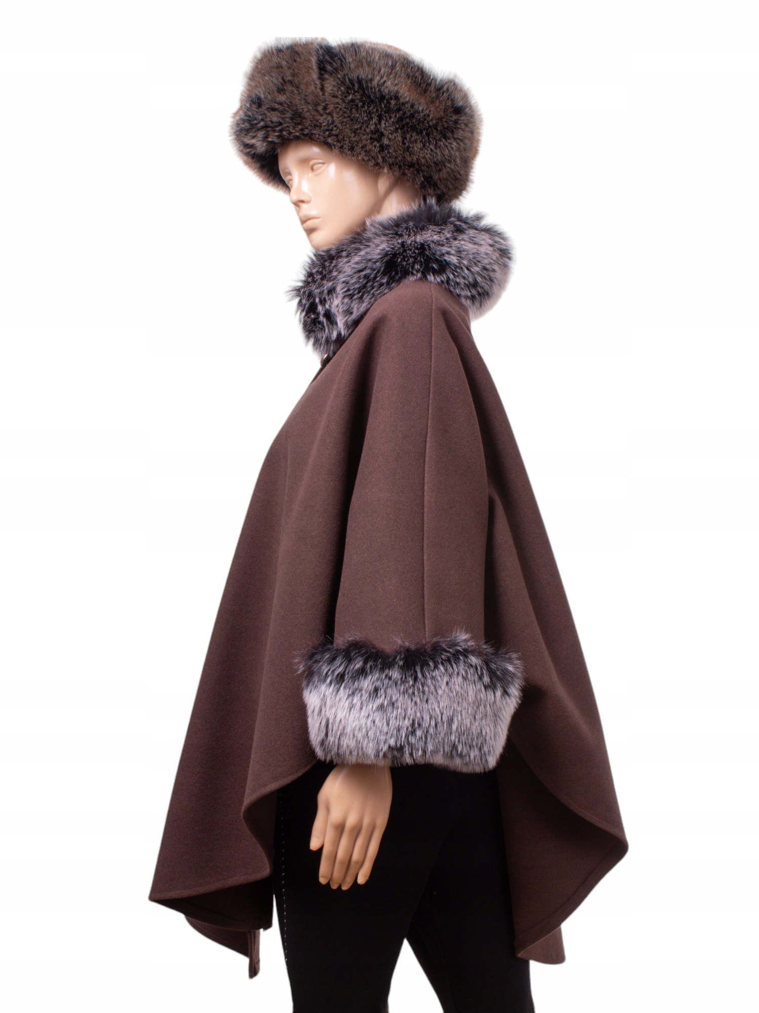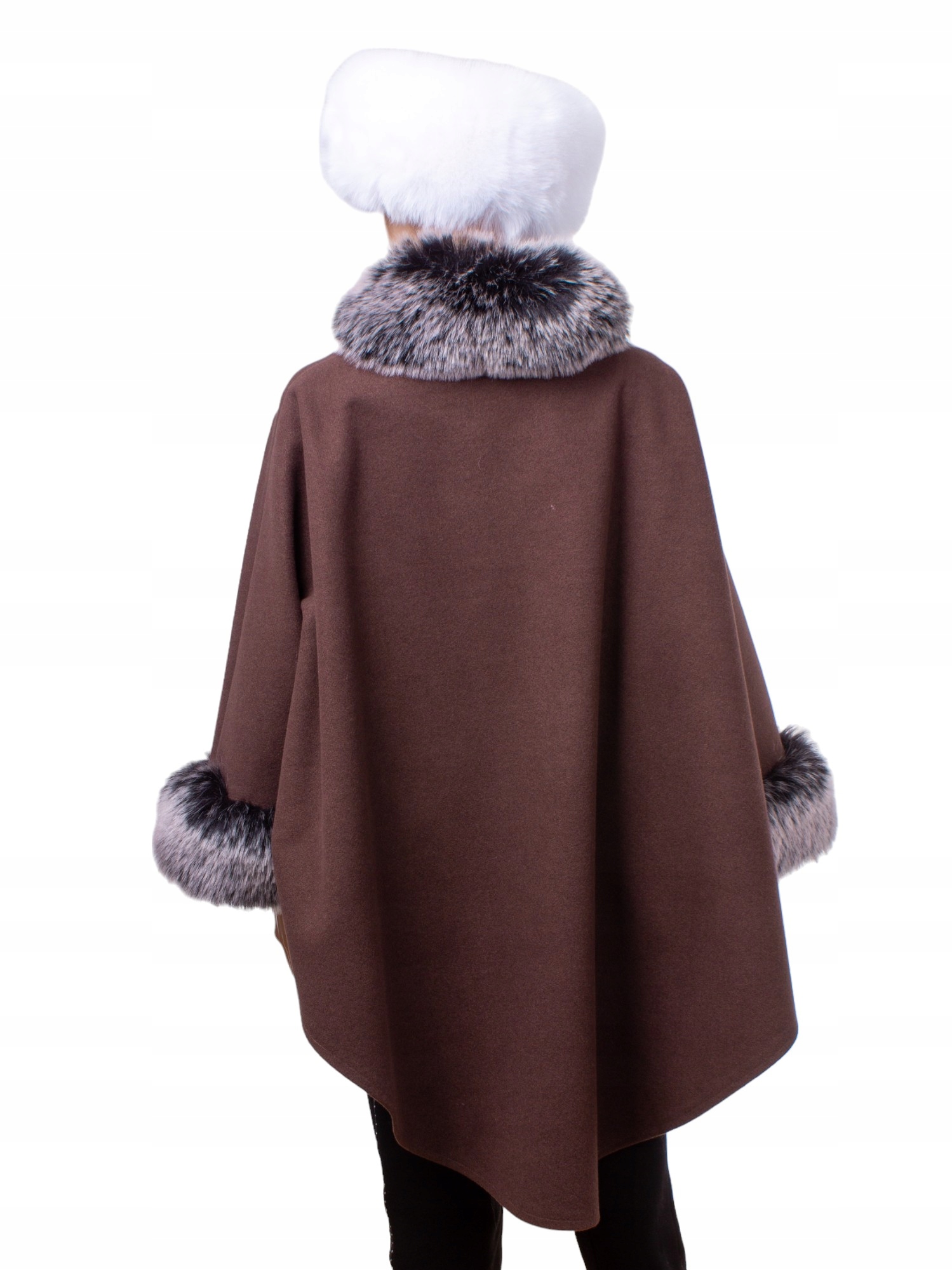 Ponczo ETOLA z eko futrem w eleganckim odcieniu beżu