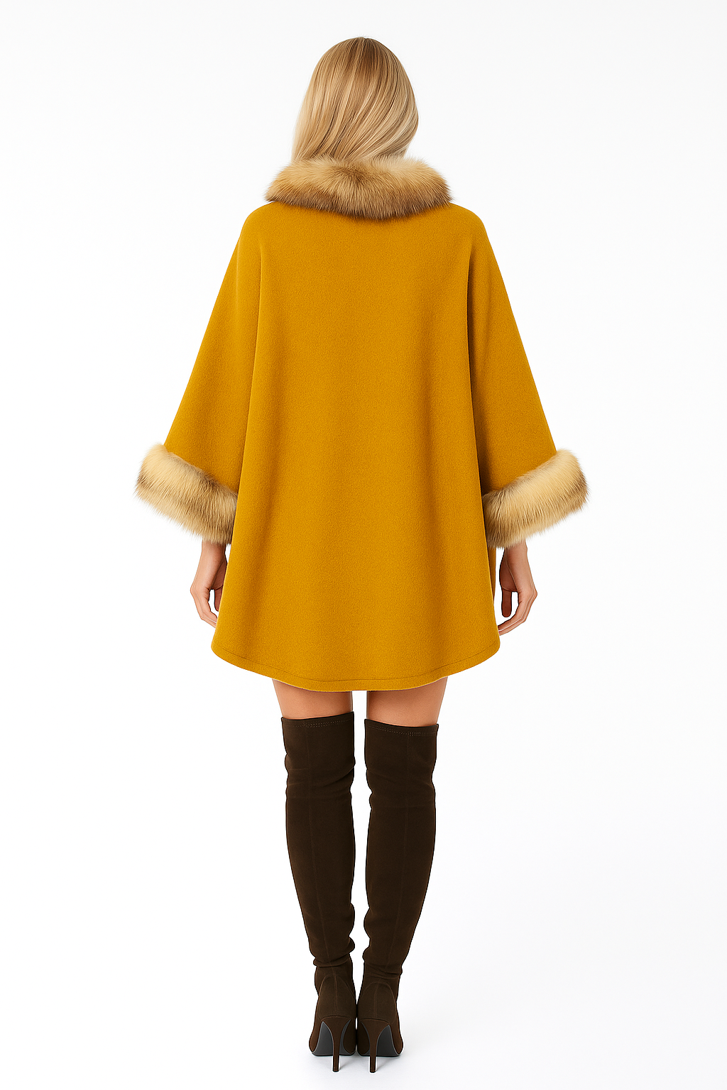 Ponczo Aurora wykonane z miękkiego materiału ala alpaka to idealny wybór na chłodne dni. Dzięki ponadczasowej formie oraz ciepłym wykończeniom z futerka wygląda niezwykle elegancko, a jednocześnie zapewnia komfort noszenia.