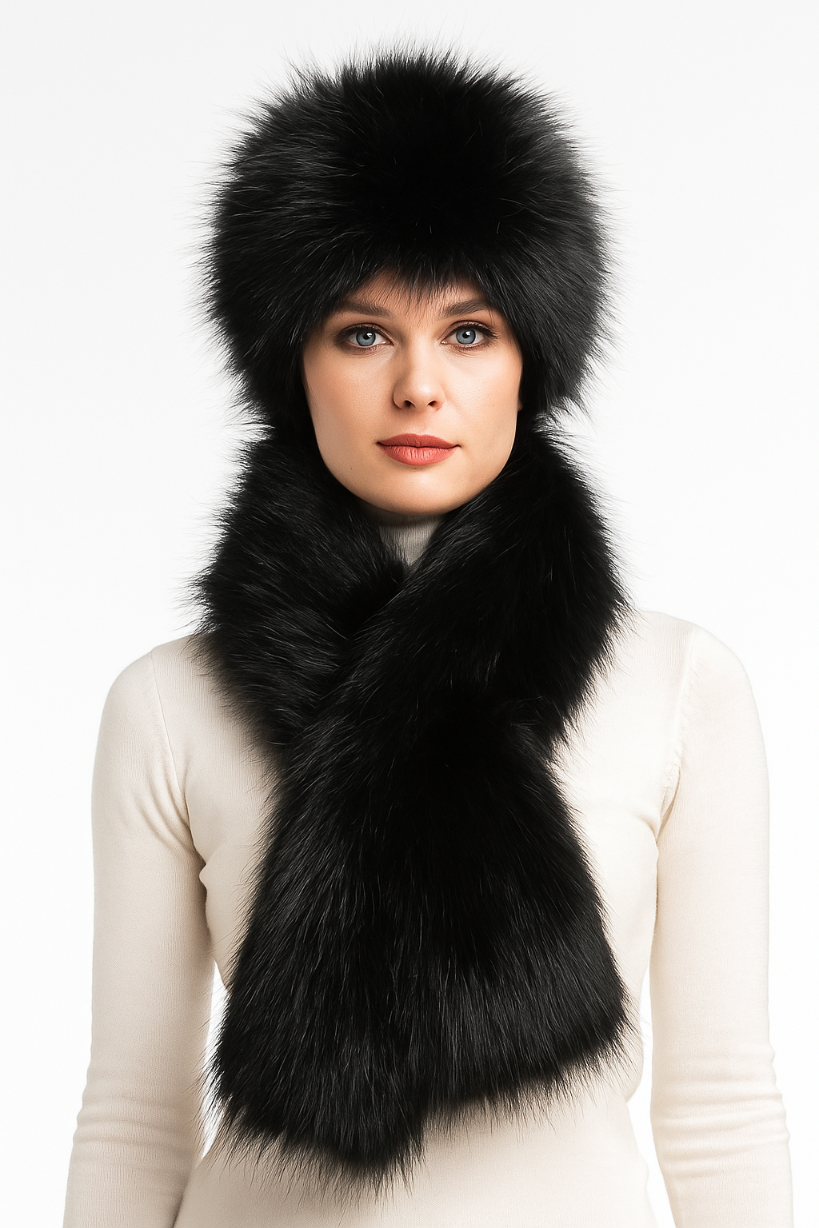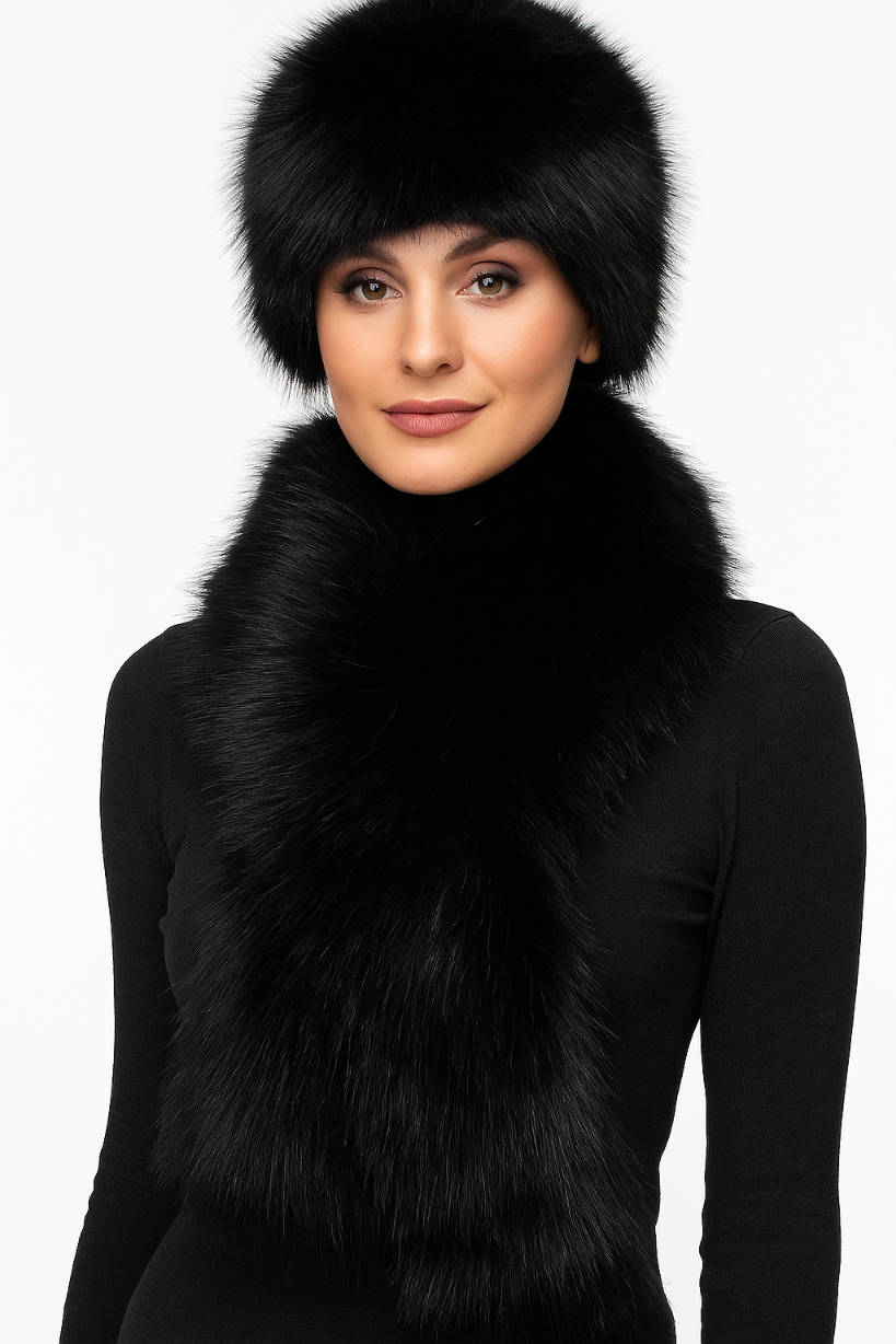 Futrzany kołnierz Futro JENOT. Szal futerkowy CZARNY